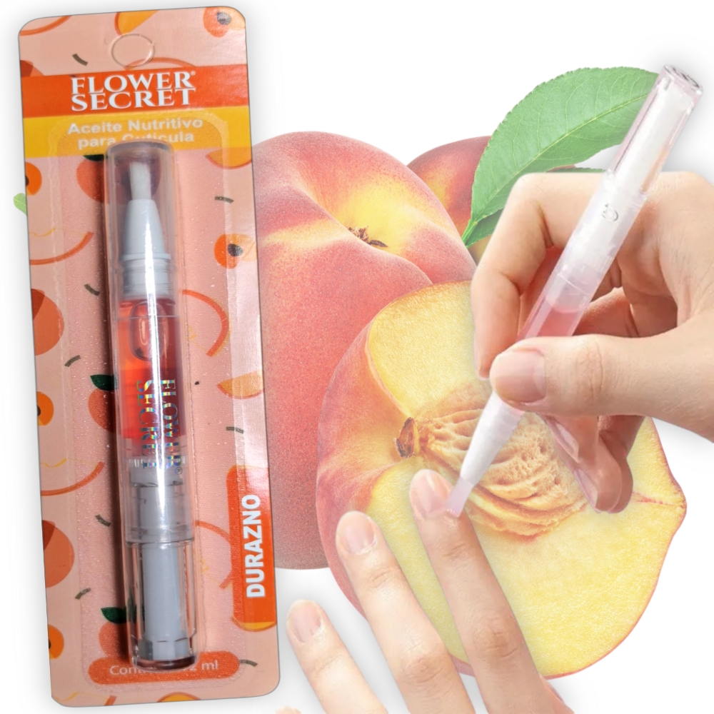 Aceite para cutículas Flower Secret 2 ml. Hidrata la zona de la cutícula y actúa como barrera protectora, promoviendo el crecimiento de uñas sanas.