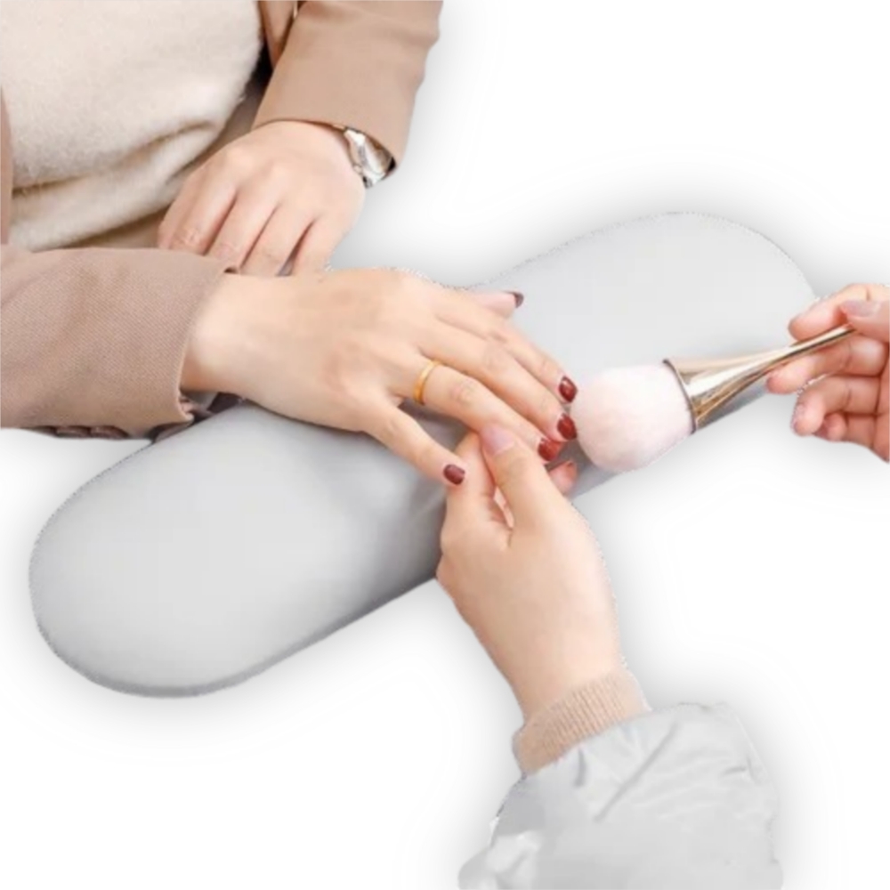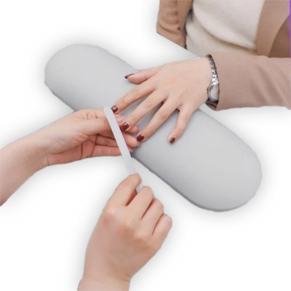 Almohada Manicure Gris Grande. Elevan la mano a una altura especifica, briindando la comodidad a la clienta y ayudar a la manicurista a mantener una postura ergonómica, evitando dolores de espalda durante el servicio.