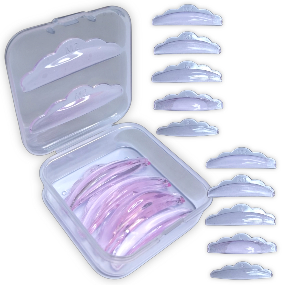 Bigudies Autoadhesivos para Lifting, 5 pares, con forma de nube, Curva C Dlux. Se colocan sobre el párpado para adherir las pestañas a él y así darles una curvatura específica durante el tratamiento químico. Tallas: S,L,M,M1,M4
