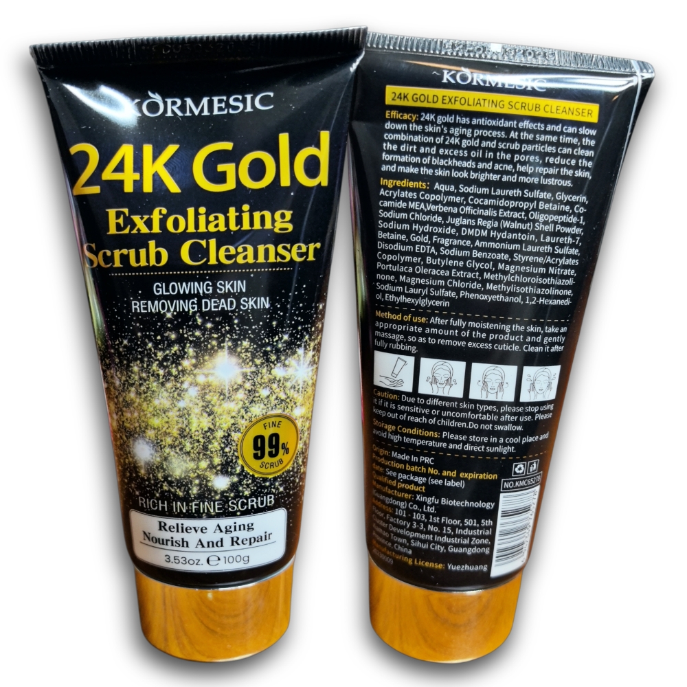 Exfoliante facial 24K con oligopéptidos, 100g. Proporciona un efecto antioxidantey ayuda a retrasar el envejecimiento de la piel.