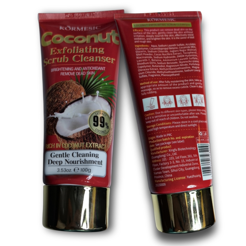 Exfoliante facial con extracto de coco 100g. Elimina las celulas muertas de la piel, destapa los poros, limpia profundamente , nutre e hidrata la piel, y puede contribuir a un tono de piel más brillante y una textura mejorada.