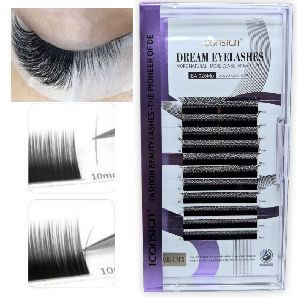 Extensiones de pestañas YY para efecto griego, 0,05C mix (8-14mm) Iconsign