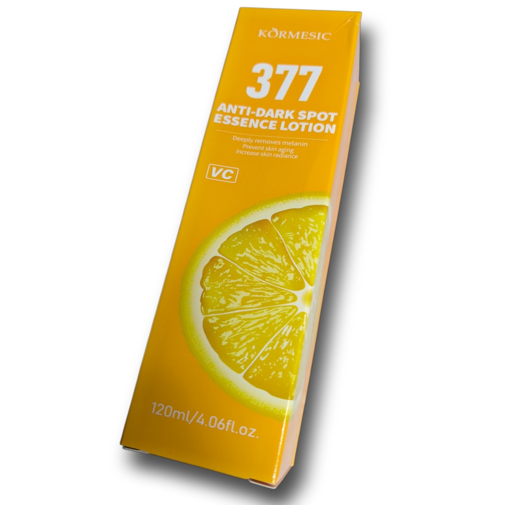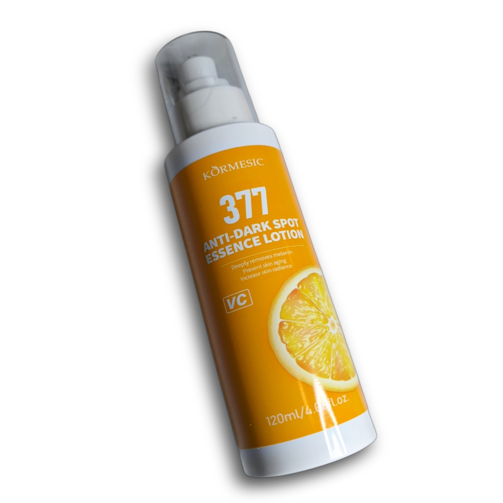 Loción esencial antimanchas KORMESIC 377 120 ml. Reduce las manchas oscuras, unifica el tono de la piel y promueve la luminosidad.