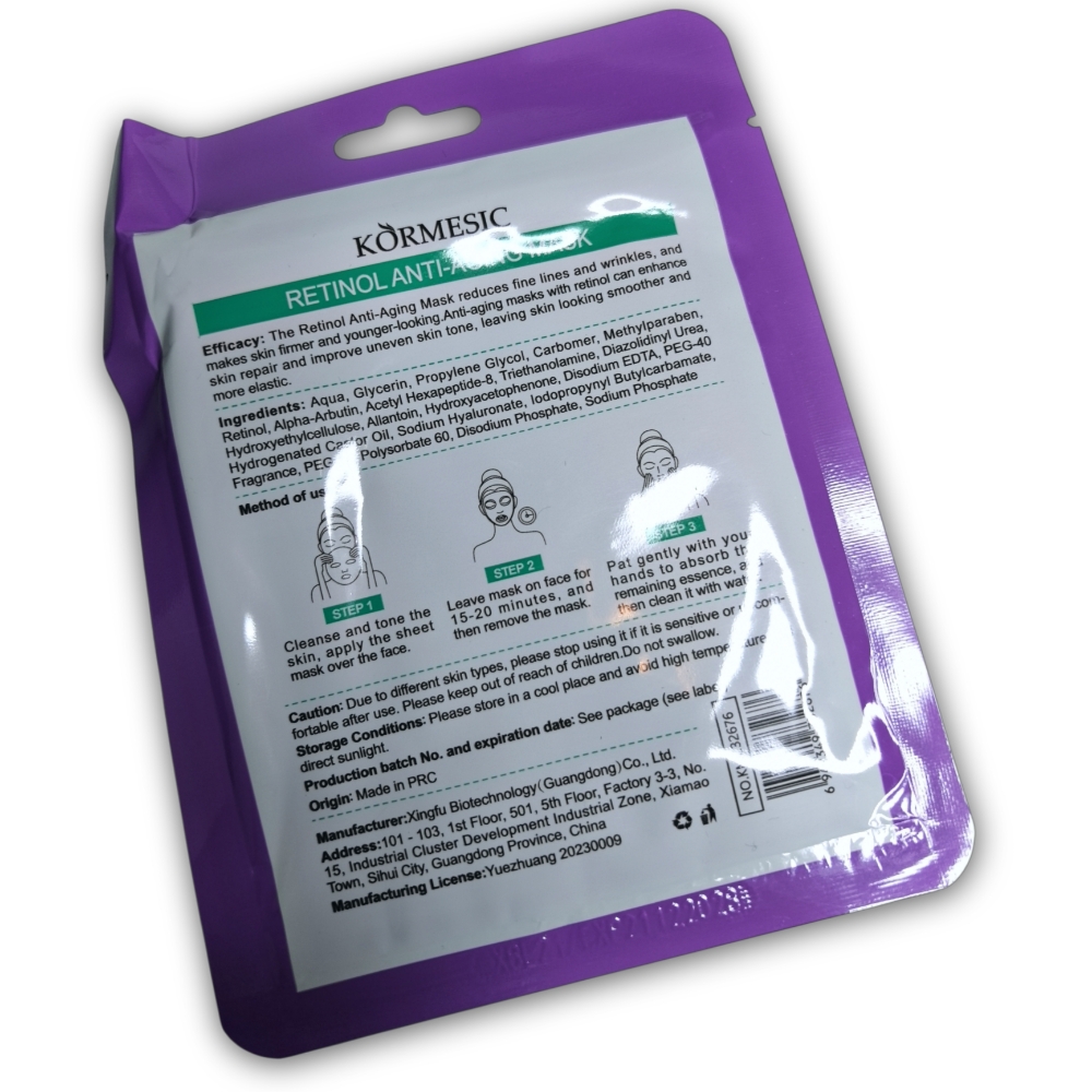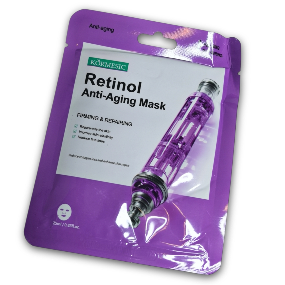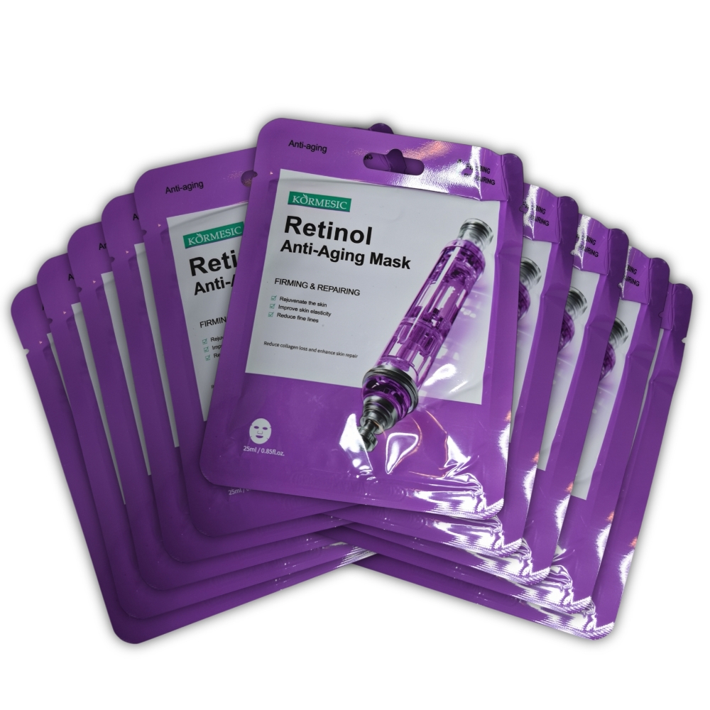 Mascarilla antienvejecimiento con retinol, 10 sachets de 25 ml c/u. Rejuvenece la piel, mejora la elasticidad, reduce arrugas, disminuye la pérdida de colágeno y mejora la reparación de la piel.