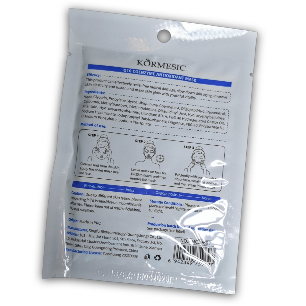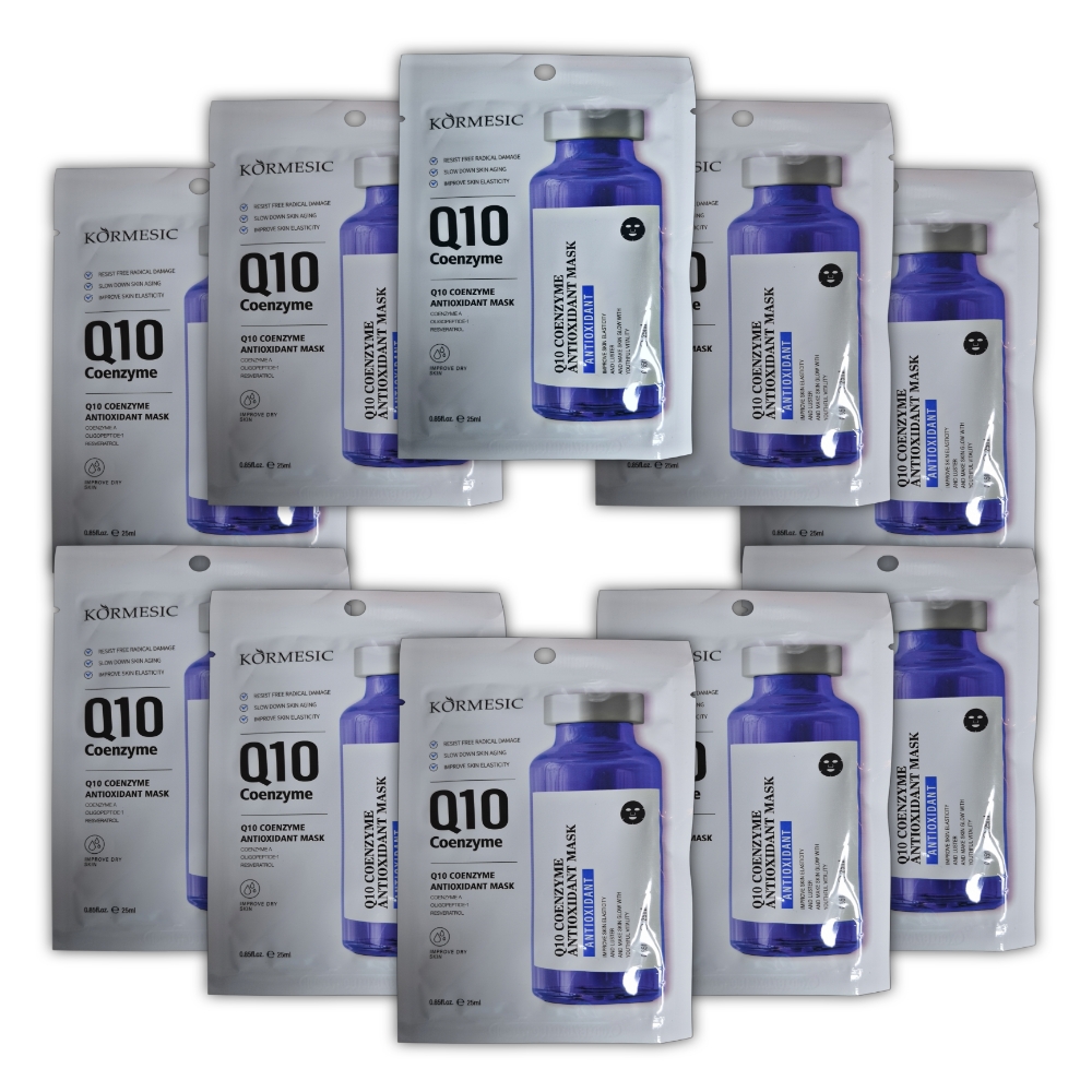 Mascarilla antioxidante de coenzima Q10, 10 sachets de 25 ml c/u. Ayuda a resistir el daño de los radicales libres, ralentiza el envejecimiento de la piel y mejora la elasticidad de la piel.