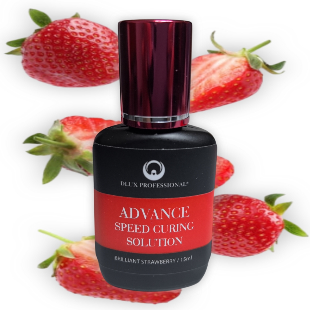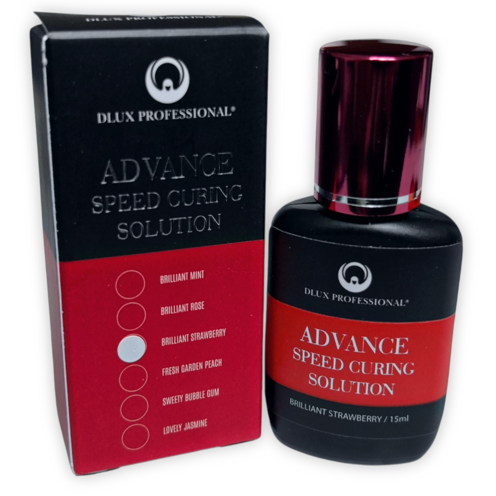 Sellante de pegamento avanzado Dlux o Solución de curado avanzado para extensiones de pestañas, 15ml. Se aplica al finalizar la colocación de las extensiones de pestañas, lo cuál permite una curación de los pegamentos casi inmediata.