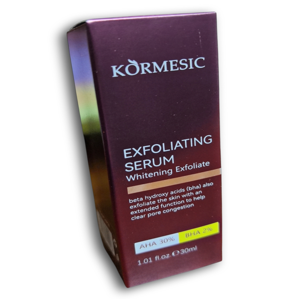 Suero exfoliante KORMESIC 30ml. Exfolia y renueva las celulas, aclara y uniforma el tono, limpia los poros, mejora la textura y reduce las imperfecciones de la piel.