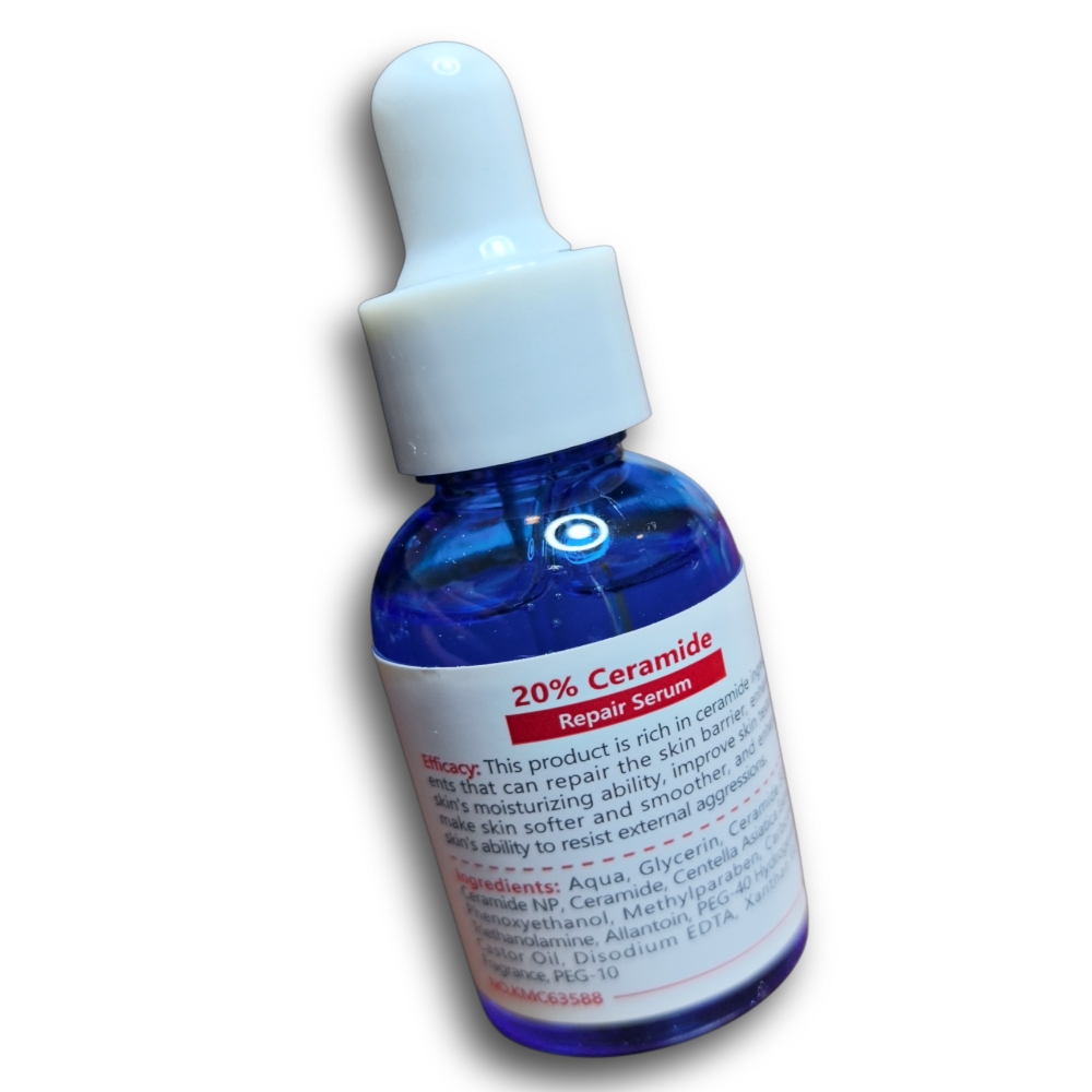 Suero reparador facial con ceramidas 30ml. Ofrece una hidratación profunda reteniendo la humidad, repara y calma la piel sensible y dañada, y fortalece la barrera cútanea.