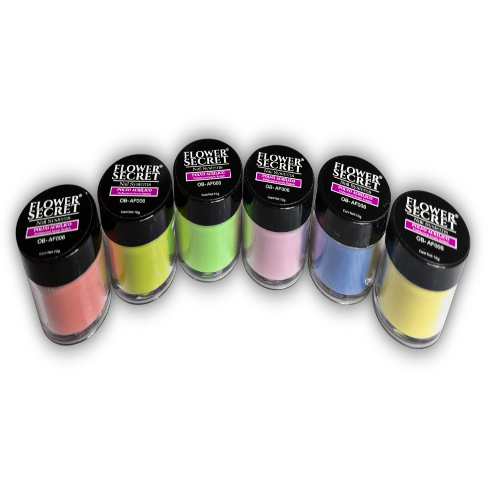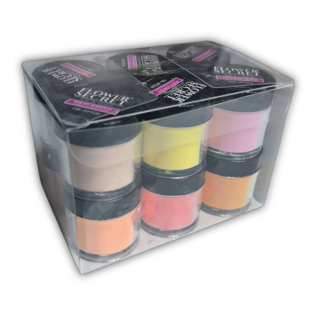 Set de 12 polvos acrílicos Flower Secret 10g c/u.
