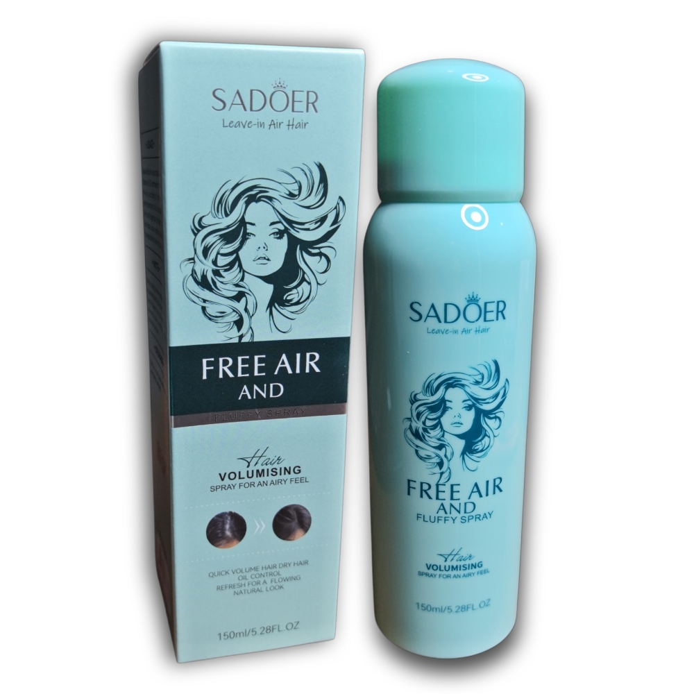 Spray voluminizador para el cabello Sadoer 150ml. Proporciona un efecto de volumen instantáneo y duradero, ideal para cabello fino o sin vida. Actúa como shampoo seco, eliminando el exceso de grasa en cuestión de segundos sin necesidad de lavado.