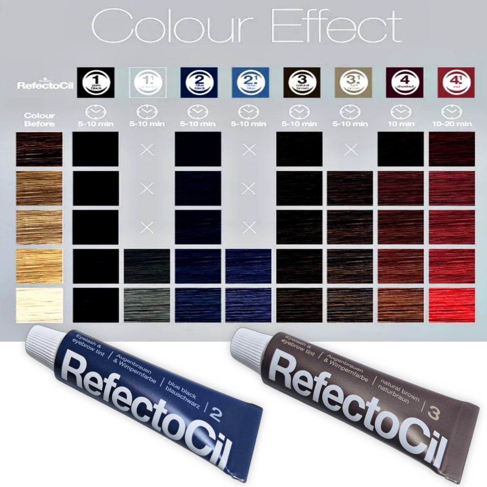 Tinte profesional para cejas y pestañas RefectoCil. Cuenta con un resultado duradero , resistente al agua y a las manchas , y puede permanecer hasta por 6 semanas. Para su aplicación, el tinte requiere mezclarse con un oxidante de la misma marca. 1. Preparación: Limpie a fondo el área de los ojos. Se recomienda realizar una prueba de alergia 48-72 horas antes de su uso. 2. Mezcla: Inmediatamente antes de teñir, mezcle aproximadamente 2 cm de tinte con 10 gotas de Oxidante líquido RefectoCil o 15-20 gotas de Oxidante en crema RefectoCil hasta obtener una pasta cremosa. 3. Aplicación y tiempo de espera: Aplique la mezcla en las pestañas y/o cejas . El tiempo de aplicación para las pestañas es de aproximadamente 10 minutos. Para las cejas, el tiempo de espera varía entre 6 y 10 minutos, dependiendo de la intensidad deseada. 4.Retire suavemente el exceso de tinte con algodón, manteniendo los ojos cerrados hasta completar el proceso.